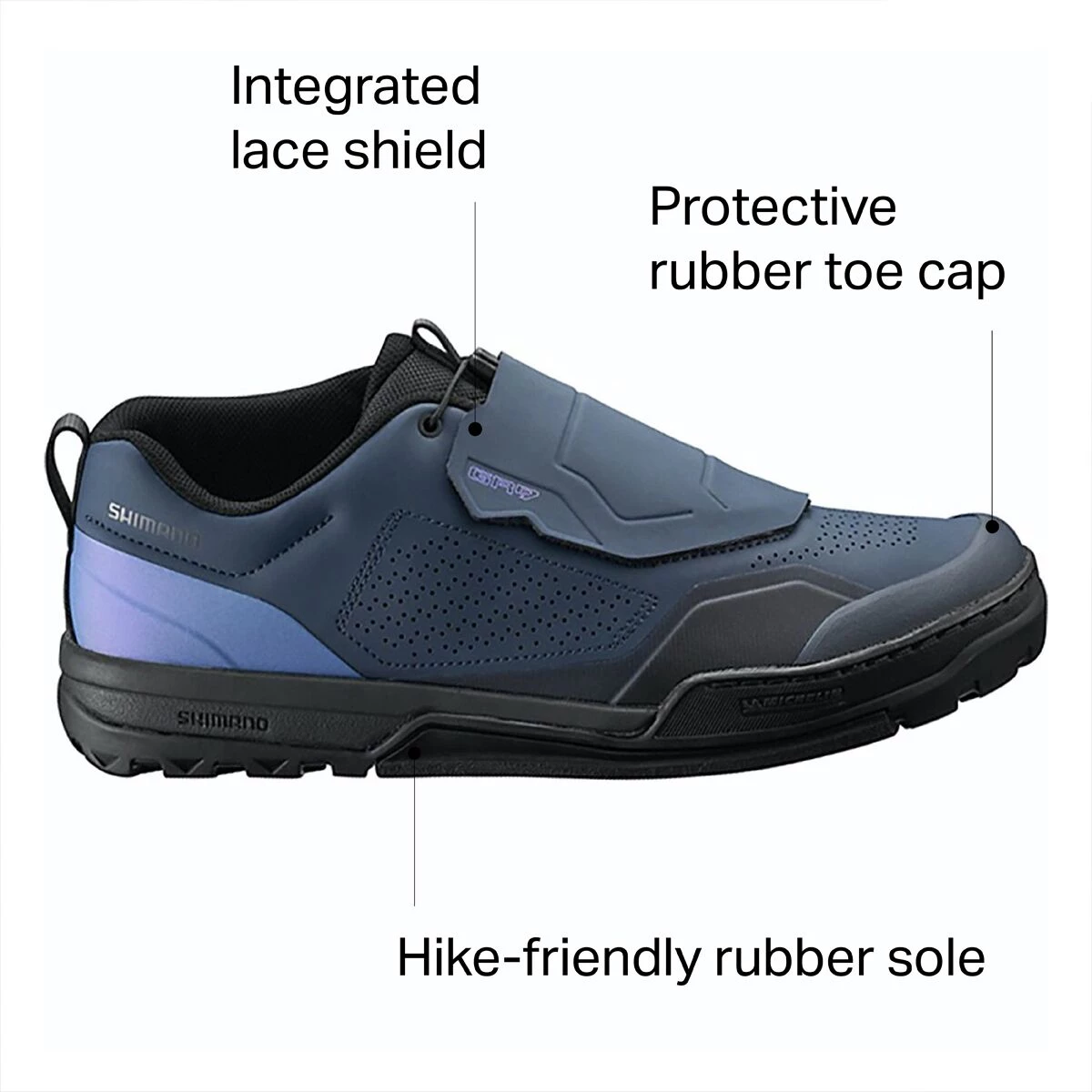 Charge into rough and chundery trails feet-first with the Shimano GR9 Mountain Bike Shoes, ready to shred the bike park day in and day out. The GR9 shoes excel on big terrain, thanks to its burly construction that’s designed for riders who like to push the limits. Tough uppers, protection where it’s needed, and breathability to keep hot-foot at bay are just some of the features that make Shimano’s new gravity-specific flat shoe a fan favorite.