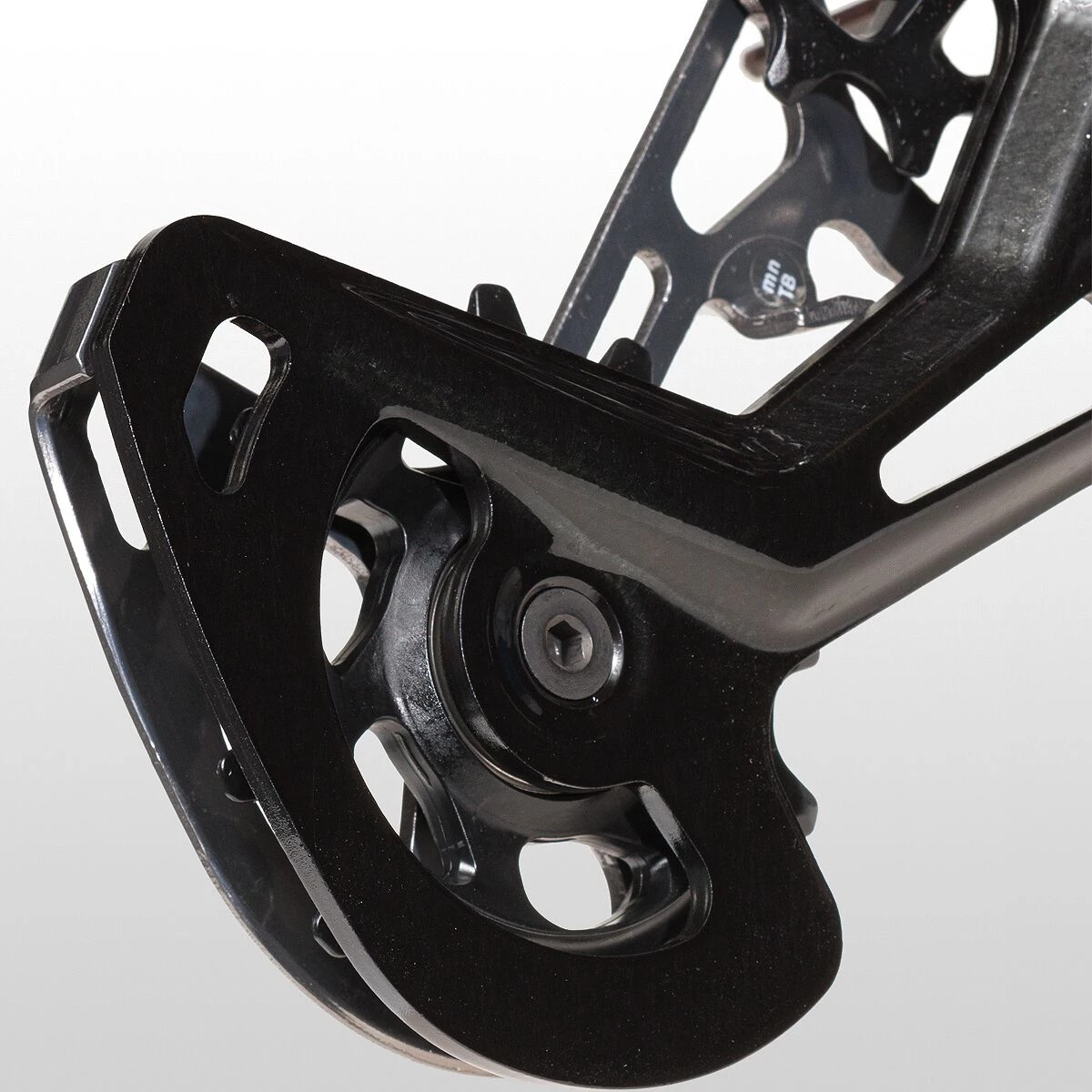 The M9100 Rear Derailleur sees improved chain stability and reduced friction thanks to larger 13t pulley wheels, making it better able to withstand full-force pedaling while shifting gears as smoothly as ever. Shimano was also able to decrease the rear derailleur tension in the lower gear positions, preventing the high chain tension that causes excess friction and noise, and thus a loss of efficiency. The Shadow RD+ clutch system provides excellent chain retention in rough terrain, and keeps annoying chain slap to a minimum. Lastly, the addition of a protective bumper to the inside of the derailleur cage quiets operation even further by cushioning the sound of any chain rub.