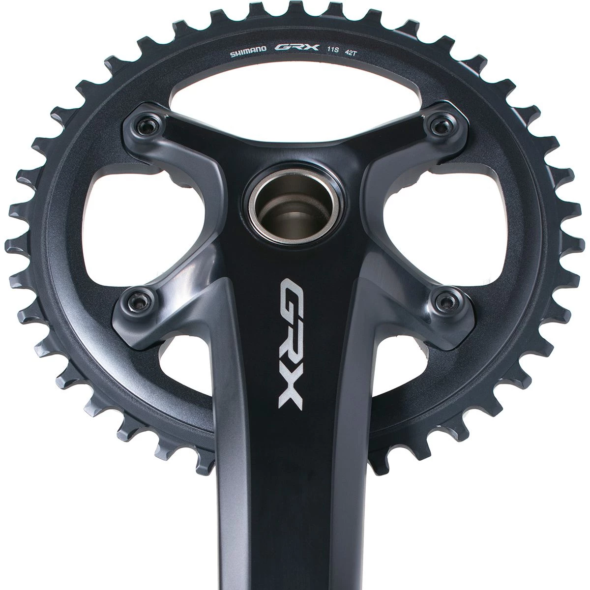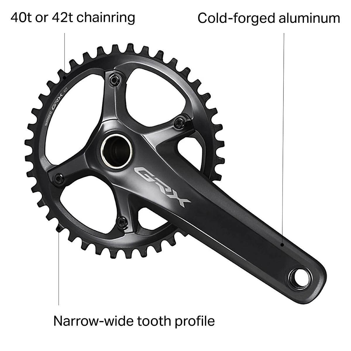 Despite the fact that gravel enthusiasts have been growing exponentially over the past decade, technology for the gravel front stayed pretty stagnant. Sure, some trickle-down technology from the mountain bike side hit the road less traveled with disc brakes and tubeless tires, but until recently there hasn’t been a designated groupset that hits the mark for gravel riding and racing. Fortunately Shimano puts a stop to that with its GRX line, and the GRX FC-RX810 1x Crankset offers a 1x application that strays away from the world of knobby, fat tires, and into gravel, rail trails, and old forgotten roads that take you to wild west towns and scenic vistas. This is significant for two reasons โ firstly, the fact that Shimano has dedicated so much time to gravel riders, but also because it’s the first time Shimano offers a dedicated 1x crankset outside of their mountain bike lineup. For riders seeking the simplicity, reliability, and improved chain retention of a single-ring drivetrain on their gravel or all-road bike, look no further. As you might’ve guessed, it’s designed to work with Shimano’s GRX 11-speed gravel group. That being said, it would work just as well if you wanted to throw it on your existing bike that’s already equipped with Shimano 11-speed road components.