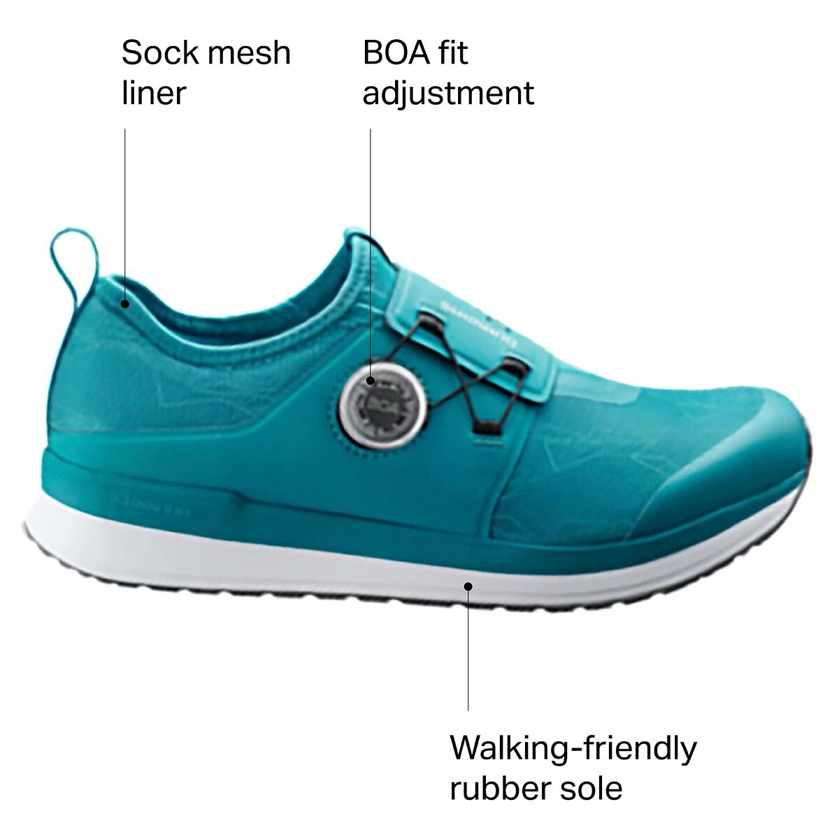If you are a cycling enthusiast but want to maintain normal walking ability when off the bike, then the soft-sole of the Shimano IC3 Cycling Shoe will captivate your heart. The sneaker-style cycling shoe features everything needed to clip-in to the spin bike or two-bolt SPD pedal on your own whip without the super stiff sole that makes walking clunky. Securing the feet for high-performance is the strong, single BOA L6 dial connected to a broad instep strap for comfort and stability in high-energy cycling efforts. Breathable mesh on the top sheds heat and moisture as the intensity increases, and the subtle styling of the IC3 helps blend back into the everyday environments with ease if you forget your standards sneaker at home.