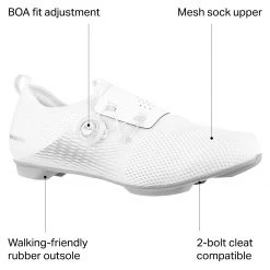 Indoor training breaks a different kind of sweat from life on the road, and handling the heat of a spin class full of other bodies can be trying. Shimano aims to make it a little easier with the IC5 Cycling Shoe. The IC5 — short for Indoor Cycling — are built with ultra-breathable uppers constructed like sock mesh for improved ventilation on hard workouts. This sock mesh allows cool air to permeate inside, while sweat is actively wicked away, allowing you to stay cooler and more comfortable when your heart rate is soaring, and you’re dreaming of summer miles pedaling in the outdoors. Since the shoes are built for indoors, Shimano decks out the sole with rubber along the entire length, which improves your grip on hard gym floors, while a full-length reinforced plate provides stable power transfer. The majority of pedals you’ll find at spin classes utilize a two-bolt SPD cleat, so rather than the standard road 3-bolt cleat, these are equipped with multiple placement points for a 2-bolt, allowing you to easily saddle up without fussing when it’s class time.