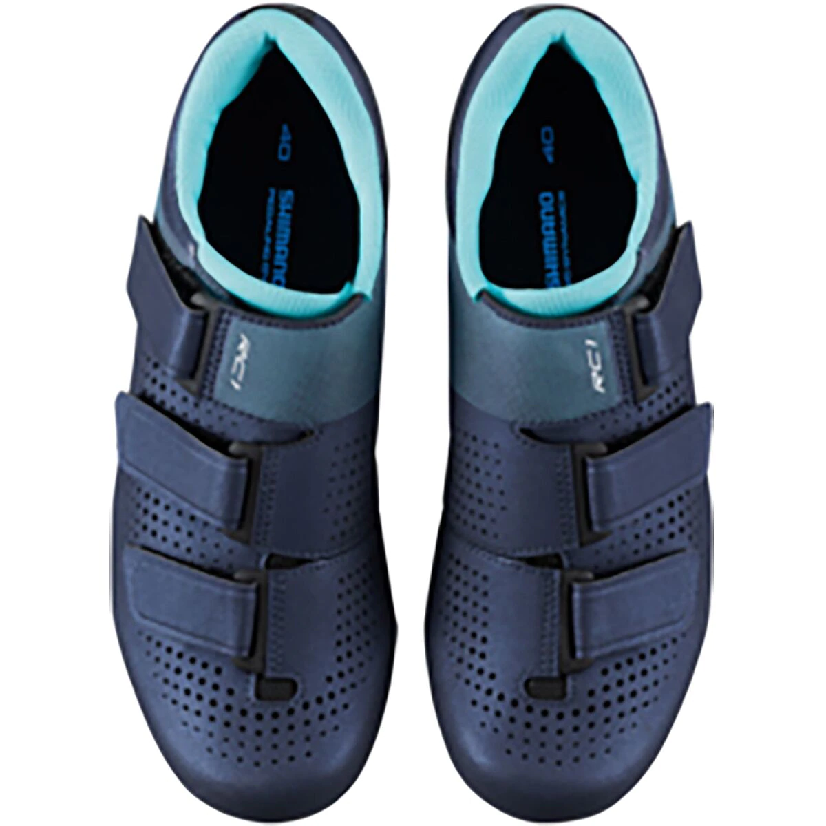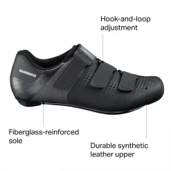 The women’s specific Shimano RC1 Cycling Shoe takes out a bit of the extra room from the male version for a more tailored fit and combines that with a value-packed design that spins nicely between gym class and on-road riding. Designed to work with your 3-bolt cleat/pedal platform fits many at-home bike trainers and standard road pedals. Three offset hook-and-loop straps close down to provide a secure and performance-focused fit while keeping a refined and aerodynamic profile. The moderate stiffness of the fiberglass reinforced nylon sole, combined with opening the straps after your interval session, provides a pleasant walking experience compared to highly stiff carbon-soled shoes on the market. The perforated synthetic upper breathes and cleans easily after early spring rides on semi-damp roadways.