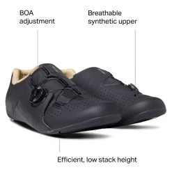 For comfort mile after mile, Shimano integrates the midsole to the upper for a seamless fit and unified form that stabilizes your foot during high power efforts. The RC3 is compatible with 3-bolt cleats for the traditional road pedal platform.