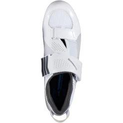 After a couple years of predictable T1 battles with the myriad ratchets and straps of your regular cycling shoes and the resulting extended transition splits, it’s time to up your game with a pair of Shimano Women’s TR501Â Cycling Shoes. The TR501’s two hook-and-loop straps are easy to operate from the saddle with shaky, wet fingers, and an asymmetrical heel loop helps you pull each shoe on while pedaling for valuable seconds gained over your fellow competitors. Breathable mesh and perforations cover the shoe’s upper, ushering air in let your feet dry off from the swim leg and stay cool ’til T2.